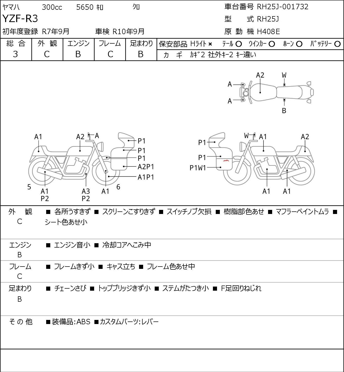 Detailed vehicle condition analysis performed by Japanese experts. Check damage codes below.
