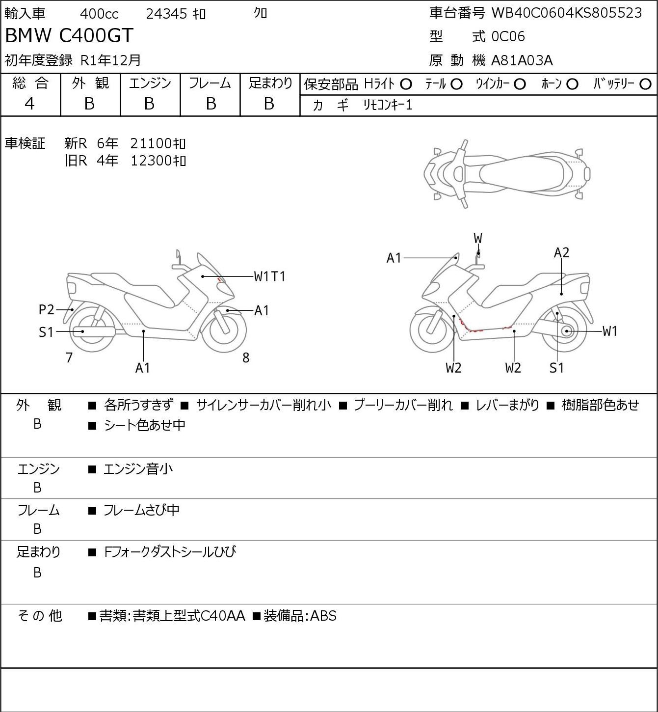 Detailed vehicle condition analysis performed by Japanese experts. Check damage codes below.