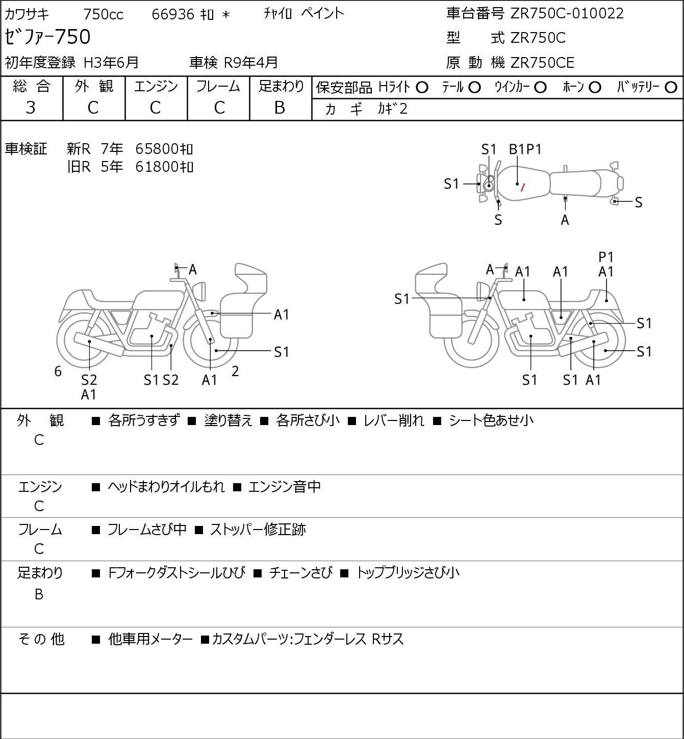Detailed vehicle condition analysis performed by Japanese experts. Check damage codes below.