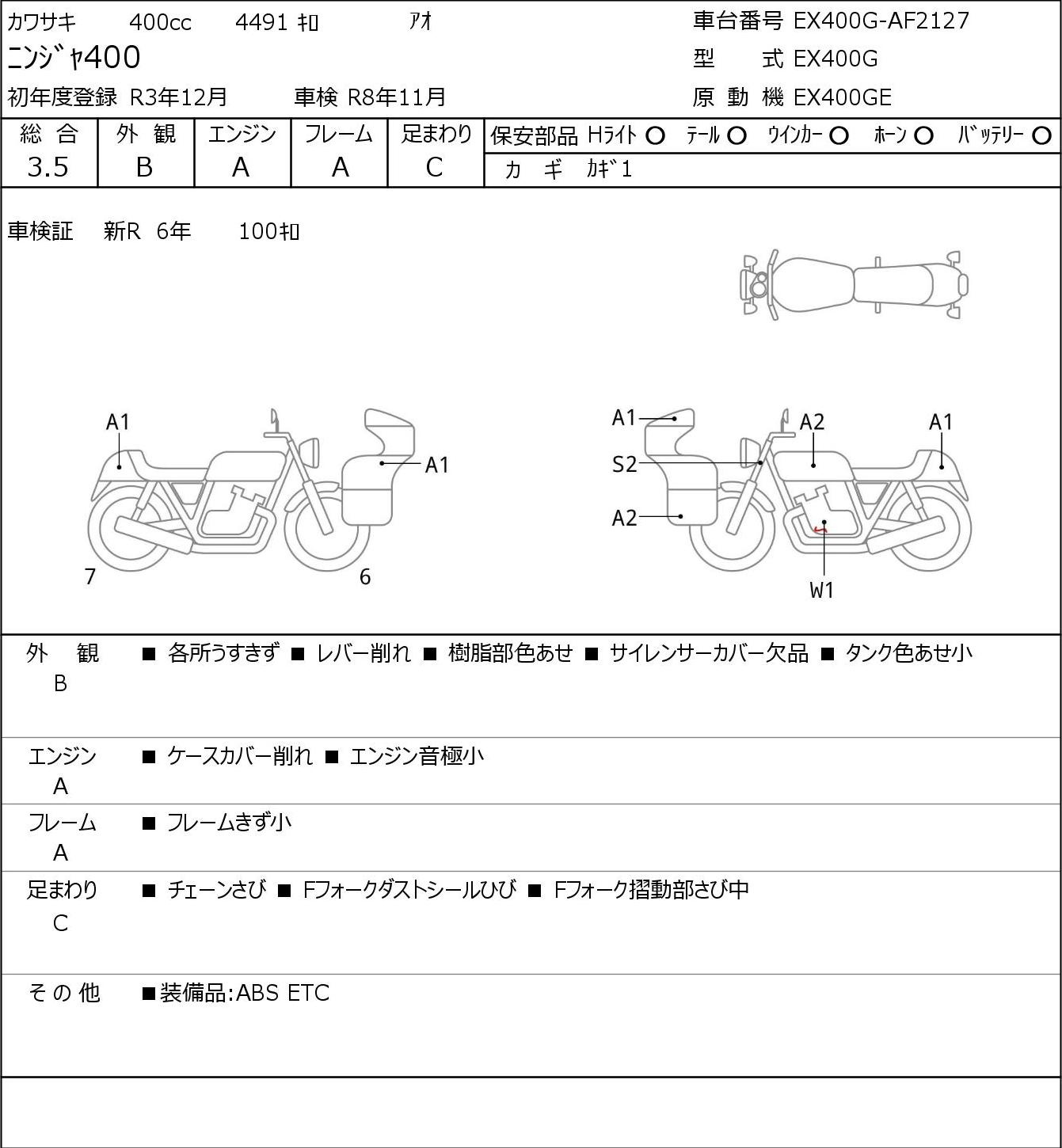 Detailed vehicle condition analysis performed by Japanese experts. Check damage codes below.