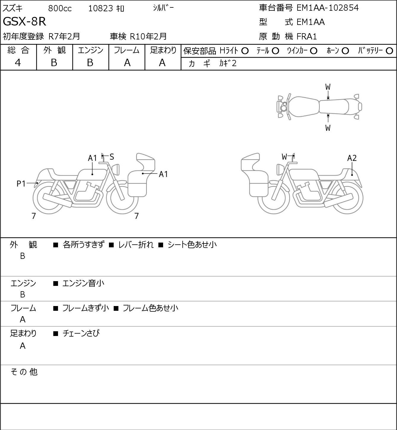 Detailed vehicle condition analysis performed by Japanese experts. Check damage codes below.