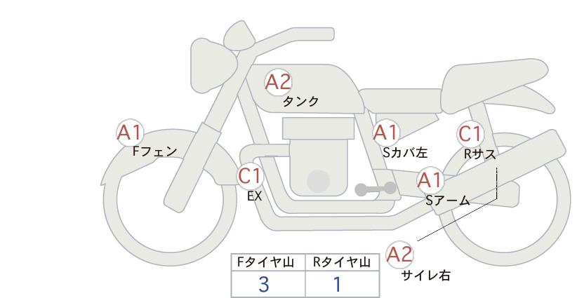 Detailed vehicle condition analysis performed by Japanese experts. Check damage codes below.