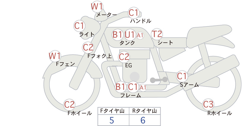 Detailed vehicle condition analysis performed by Japanese experts. Check damage codes below.