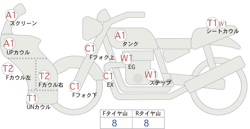 Detailed vehicle condition analysis performed by Japanese experts. Check damage codes below.
