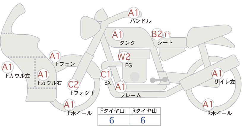 Detailed vehicle condition analysis performed by Japanese experts. Check damage codes below.