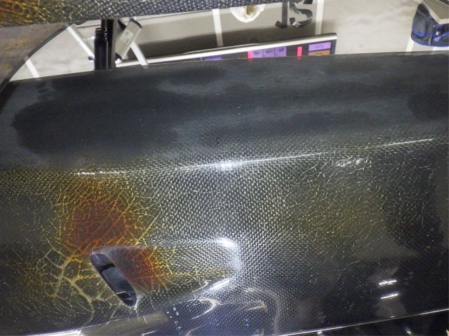 engine cover attaching shave. each place scratch many. rust many. discoloration. cowl gap.
