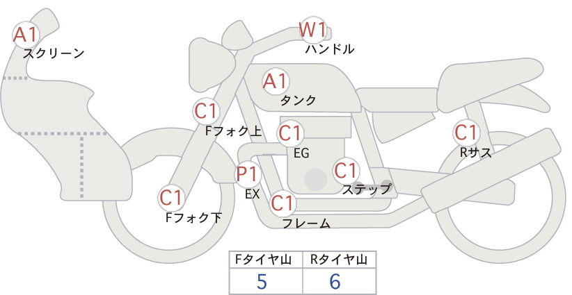 Detailed vehicle condition analysis performed by Japanese experts. Check damage codes below.