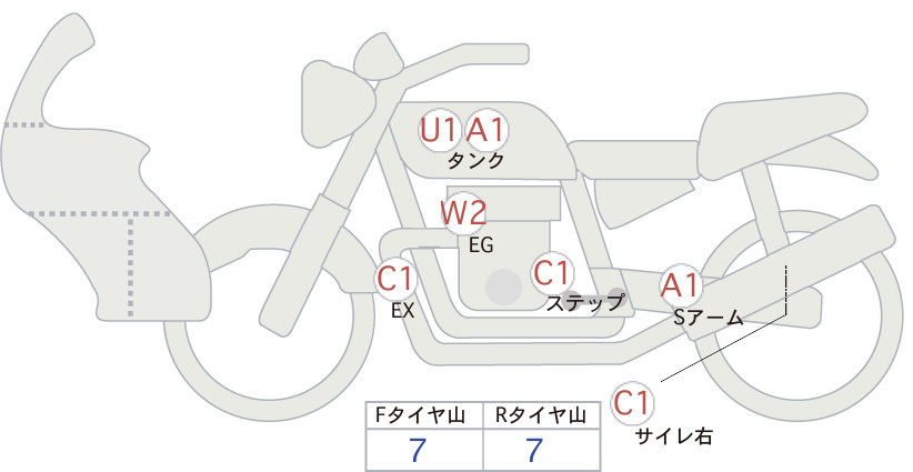 Detailed vehicle condition analysis performed by Japanese experts. Check damage codes below.