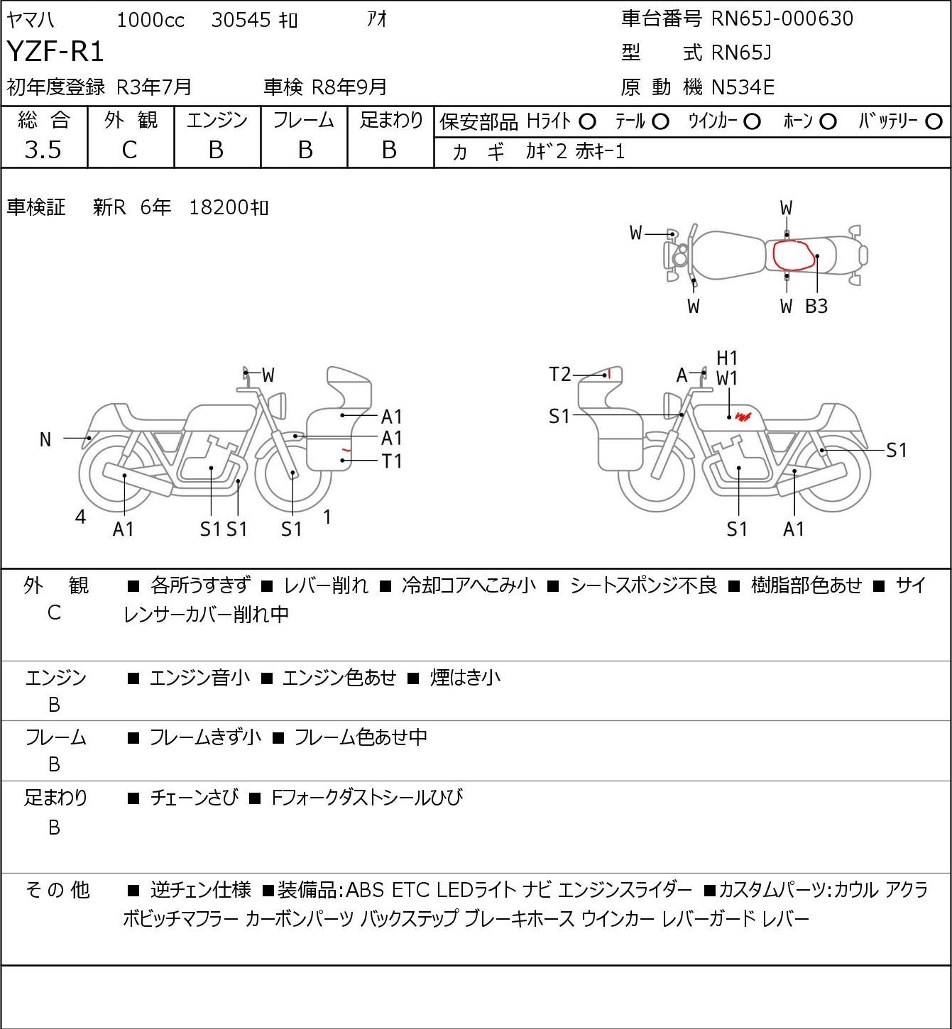 Detailed vehicle condition analysis performed by Japanese experts. Check damage codes below.