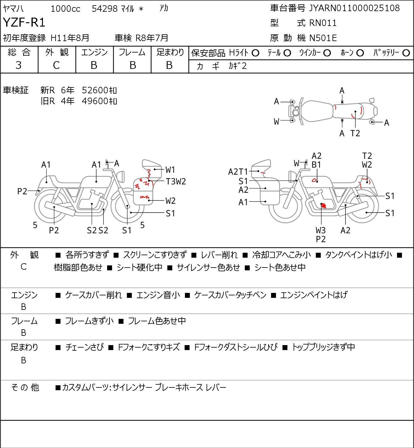 Detailed vehicle condition analysis performed by Japanese experts. Check damage codes below.