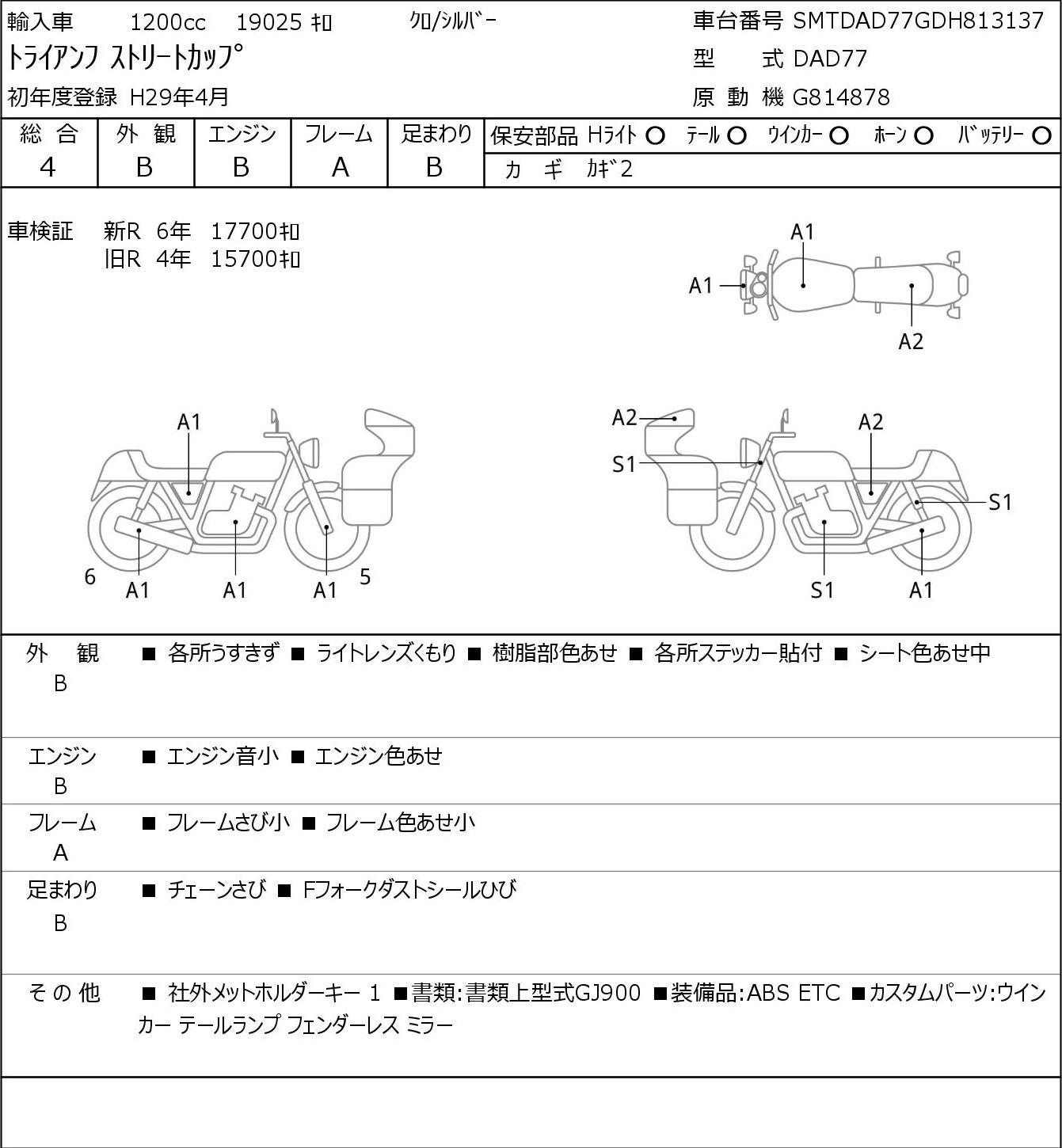 Detailed vehicle condition analysis performed by Japanese experts. Check damage codes below.