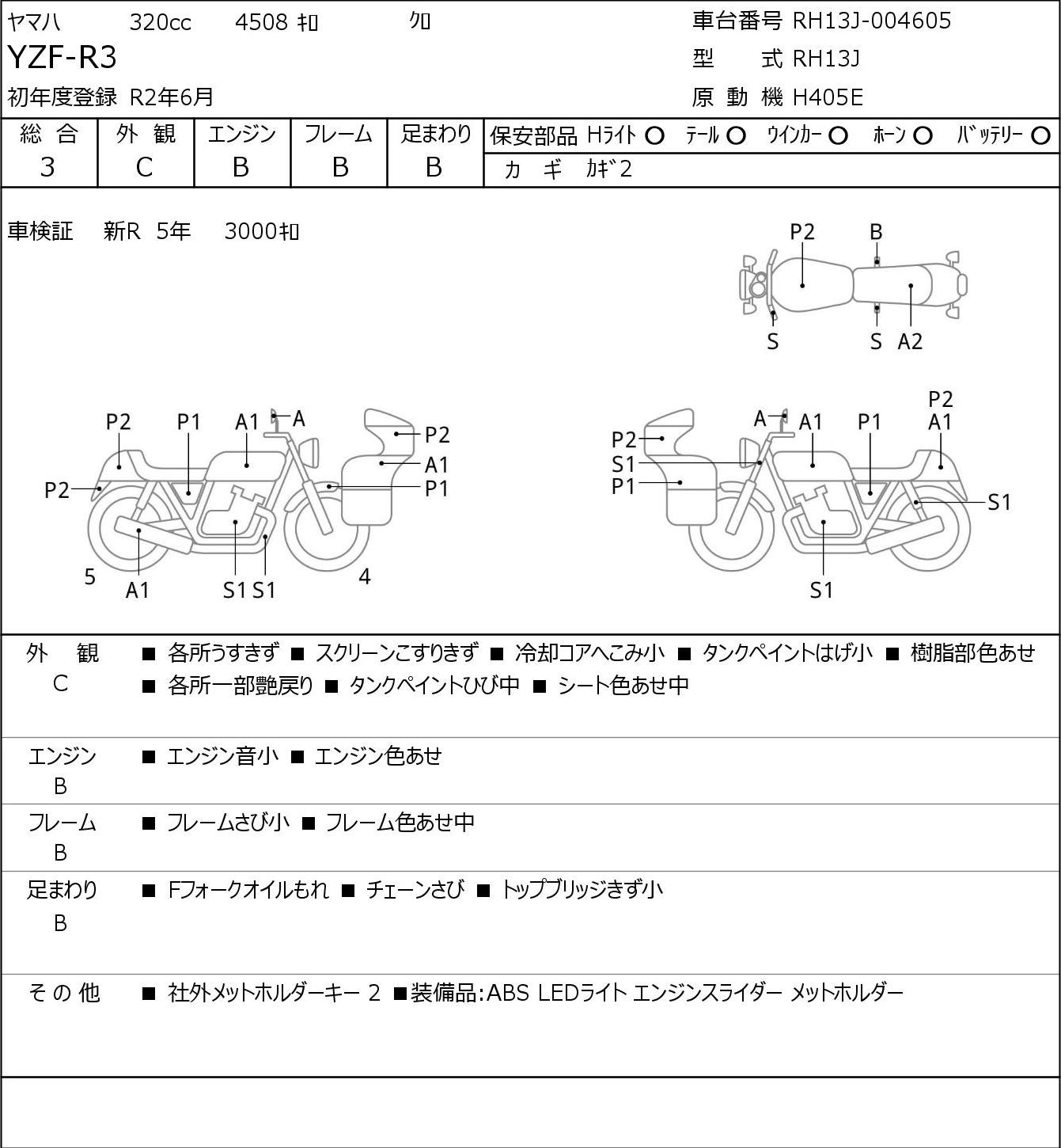 Detailed vehicle condition analysis performed by Japanese experts. Check damage codes below.