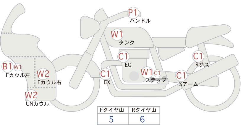 Detailed vehicle condition analysis performed by Japanese experts. Check damage codes below.