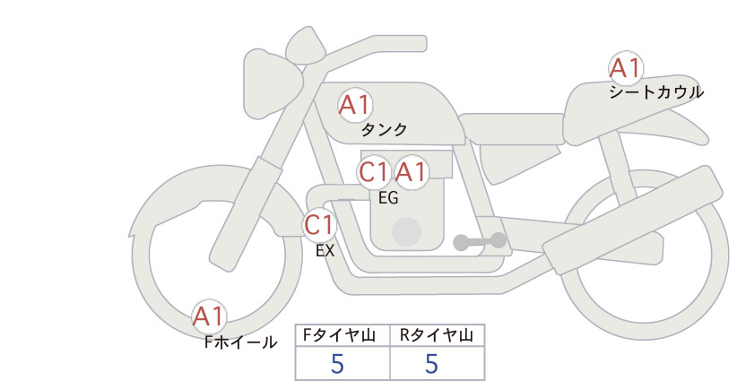 Detailed vehicle condition analysis performed by Japanese experts. Check damage codes below.