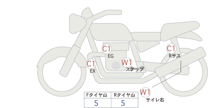 Detailed vehicle condition analysis performed by Japanese experts. Check damage codes below.