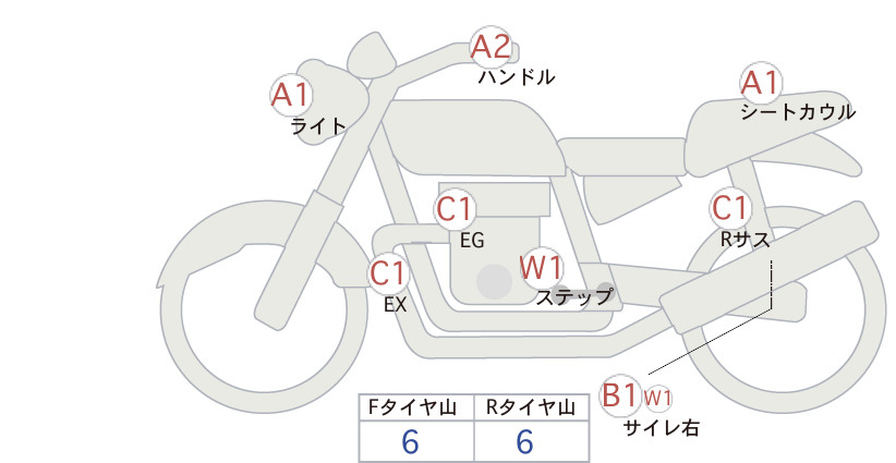 Detailed vehicle condition analysis performed by Japanese experts. Check damage codes below.