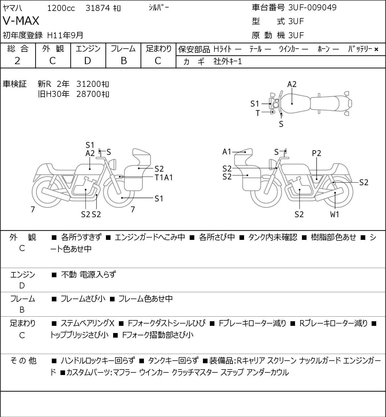 Detailed vehicle condition analysis performed by Japanese experts. Check damage codes below.