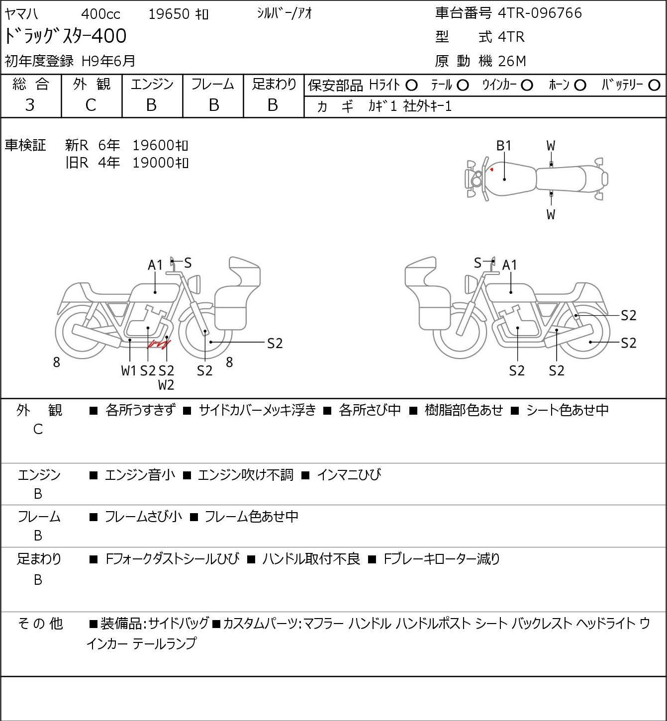 Detailed vehicle condition analysis performed by Japanese experts. Check damage codes below.