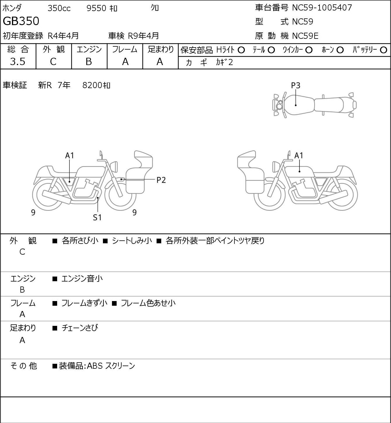 Detailed vehicle condition analysis performed by Japanese experts. Check damage codes below.