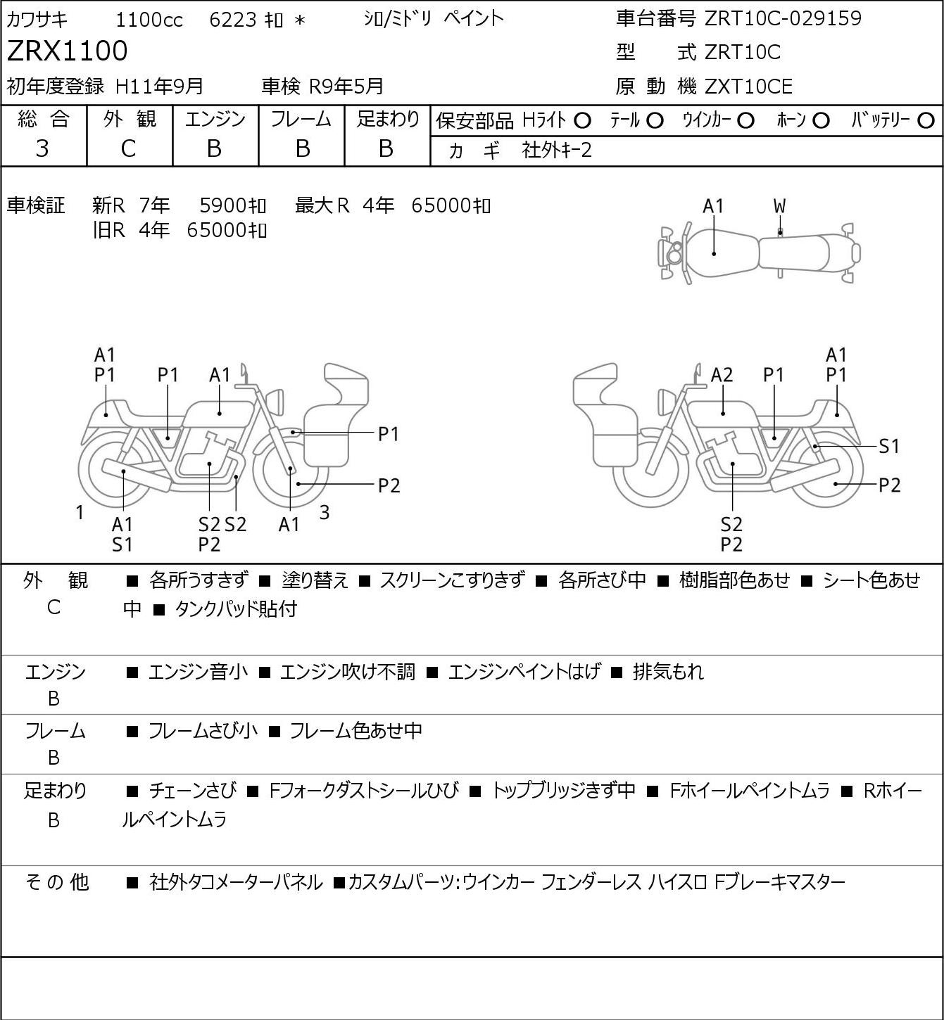 Detailed vehicle condition analysis performed by Japanese experts. Check damage codes below.