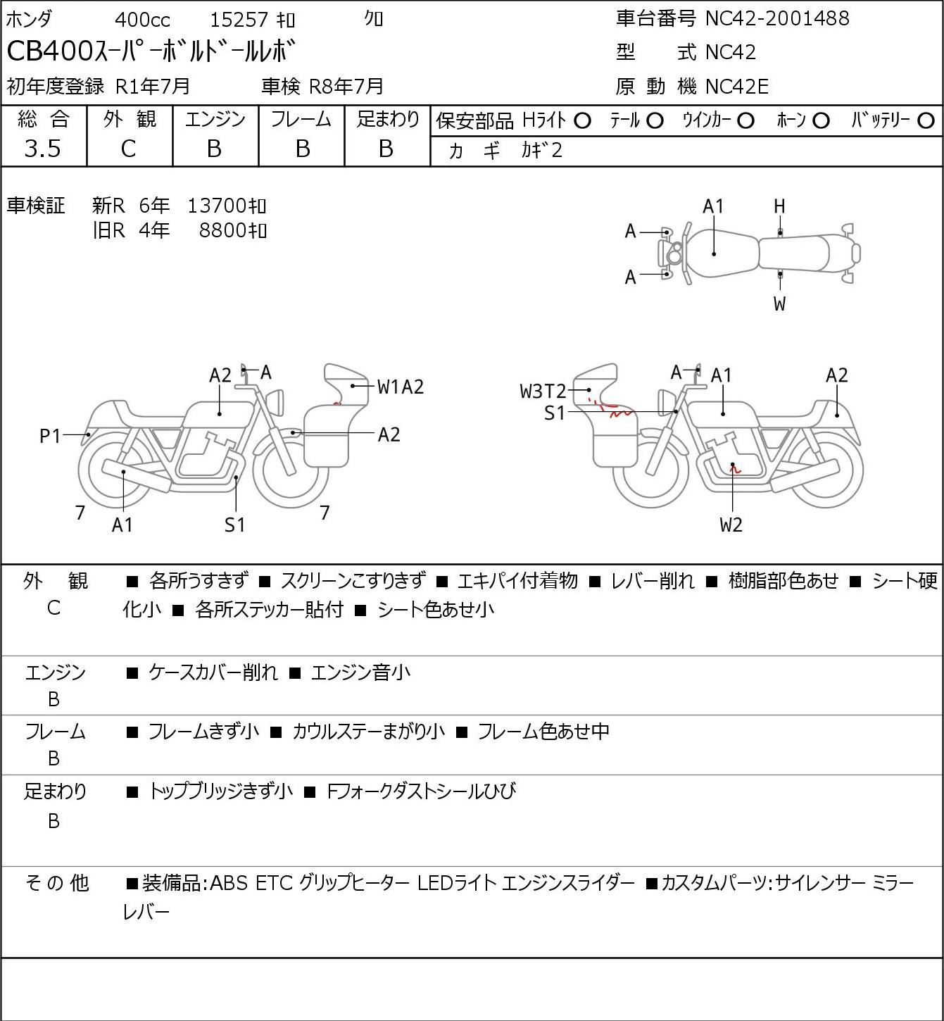 Detailed vehicle condition analysis performed by Japanese experts. Check damage codes below.