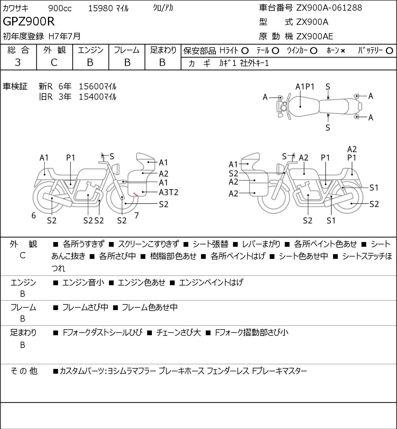 Detailed vehicle condition analysis performed by Japanese experts. Check damage codes below.