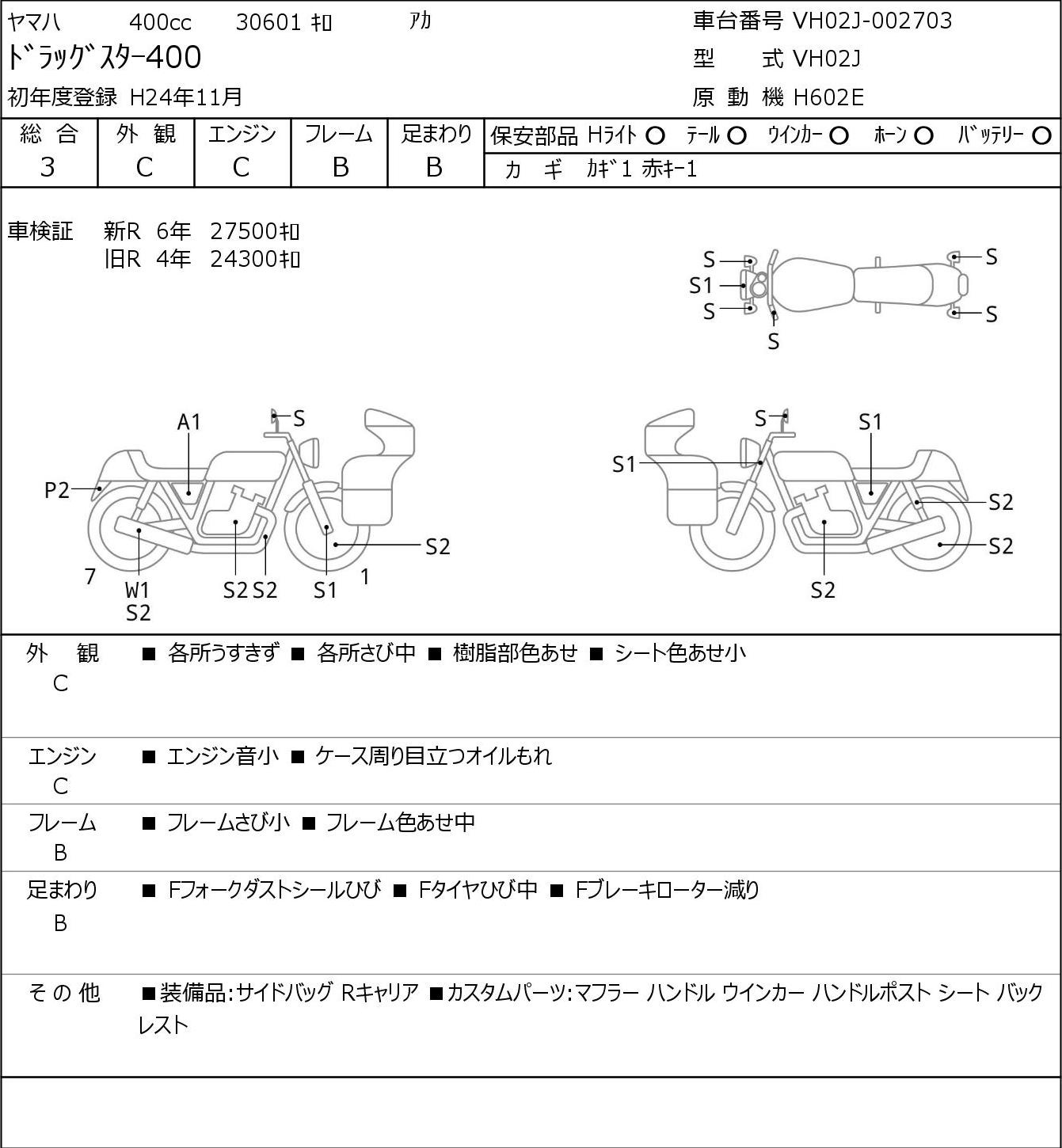 Detailed vehicle condition analysis performed by Japanese experts. Check damage codes below.