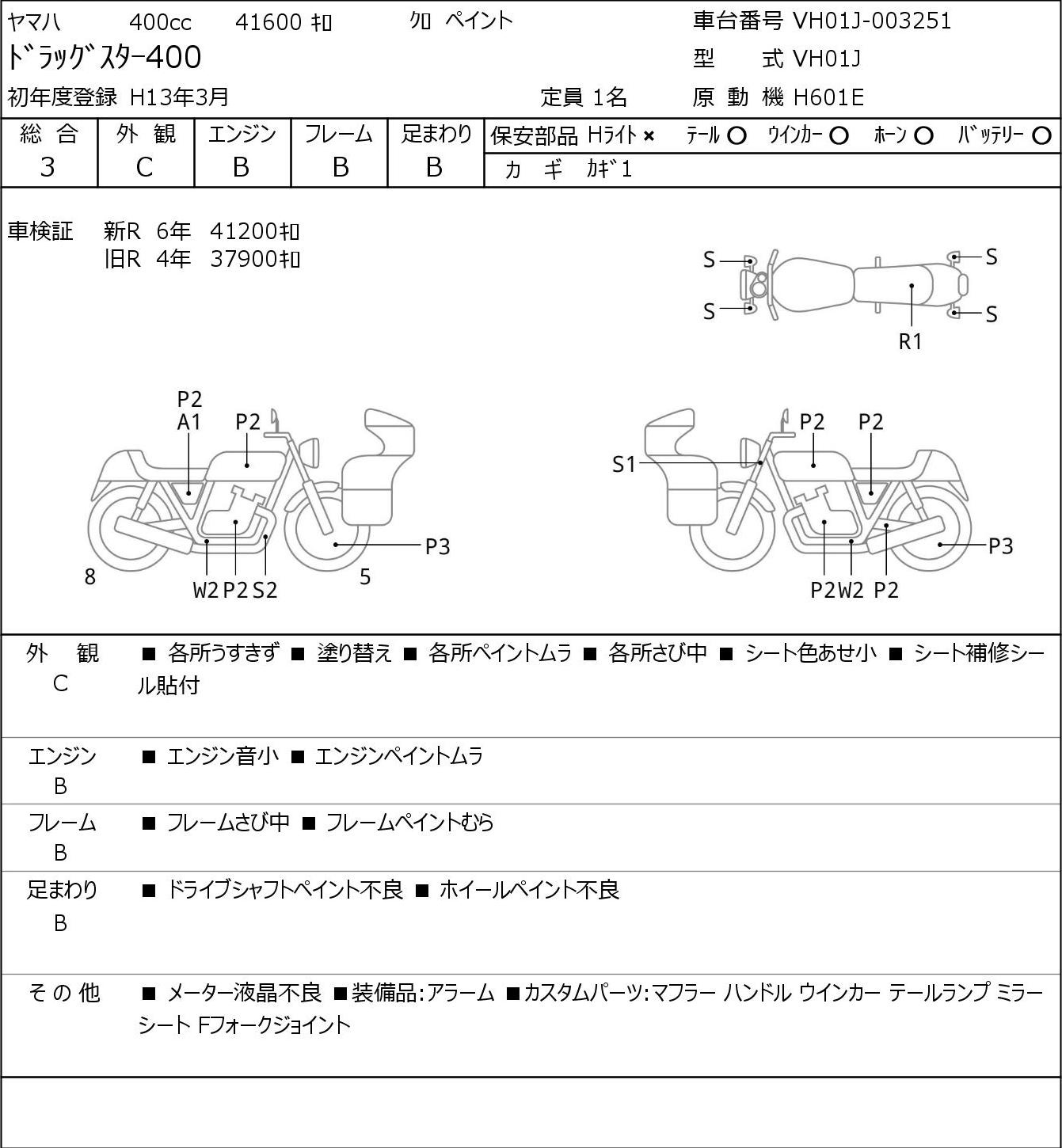 Detailed vehicle condition analysis performed by Japanese experts. Check damage codes below.