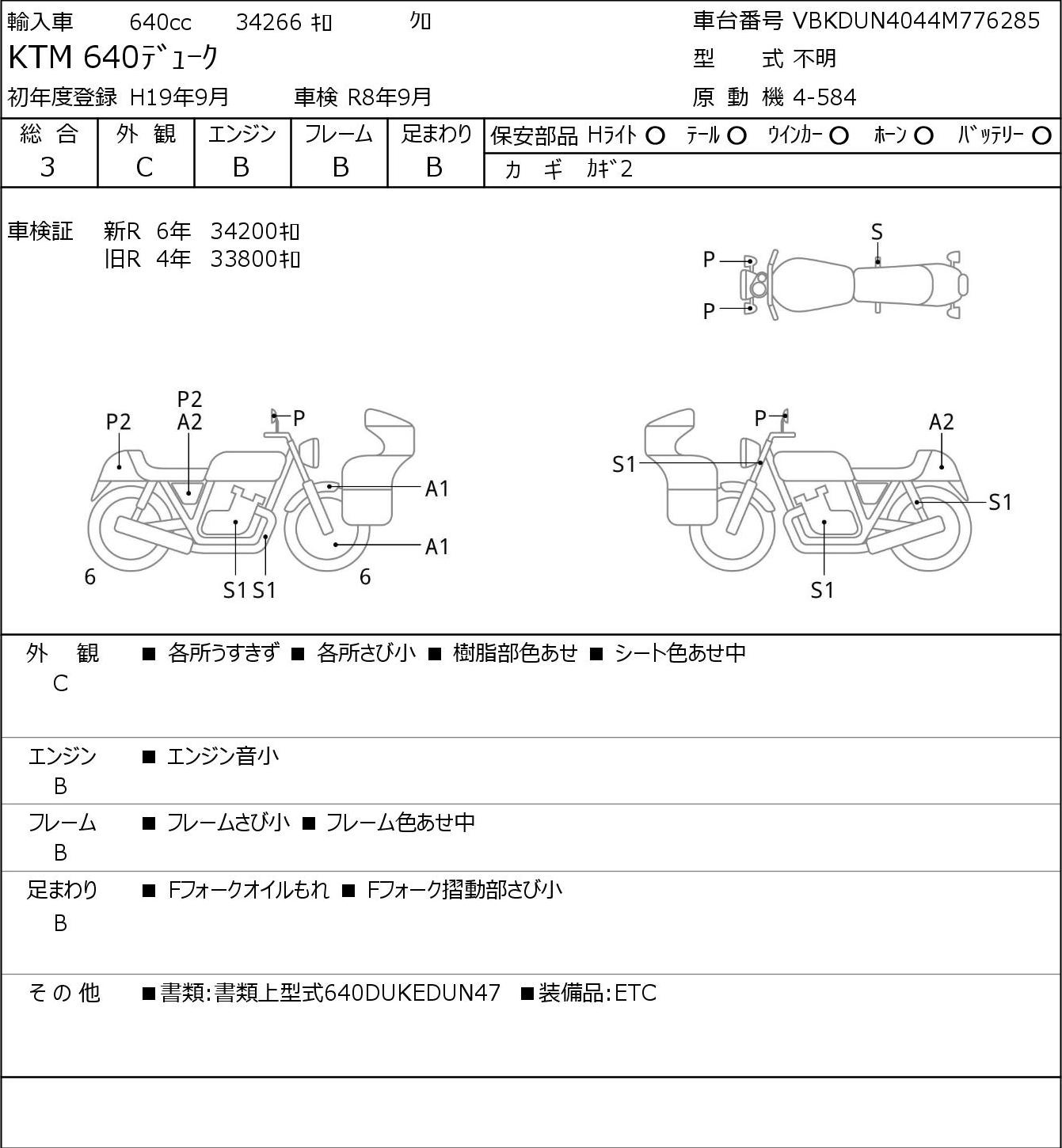 Detailed vehicle condition analysis performed by Japanese experts. Check damage codes below.