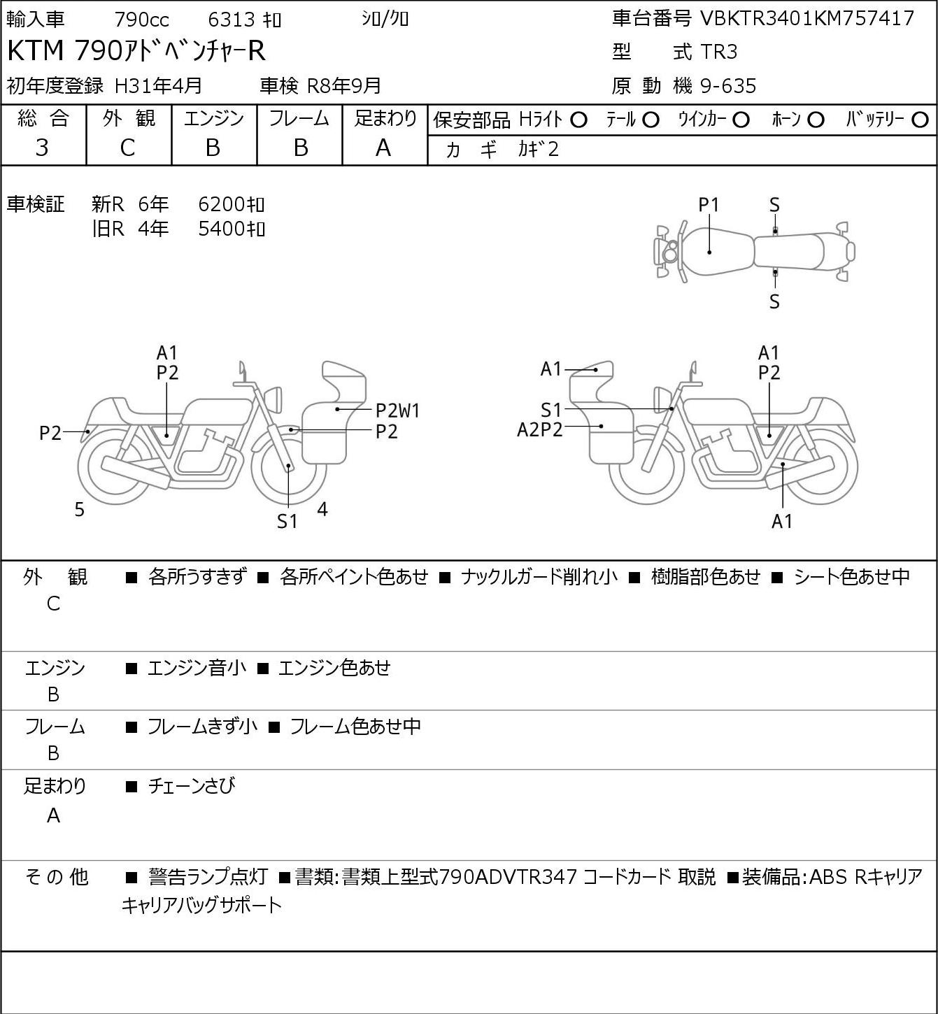 Detailed vehicle condition analysis performed by Japanese experts. Check damage codes below.