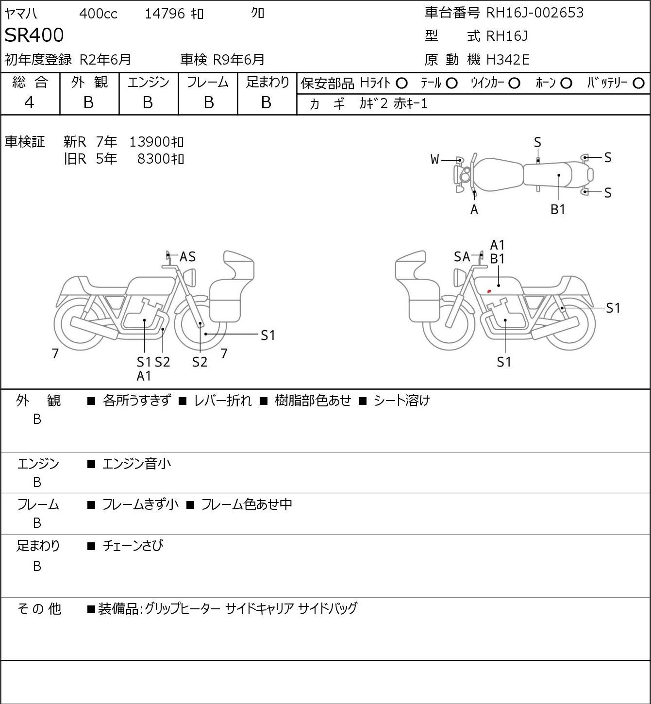 Detailed vehicle condition analysis performed by Japanese experts. Check damage codes below.