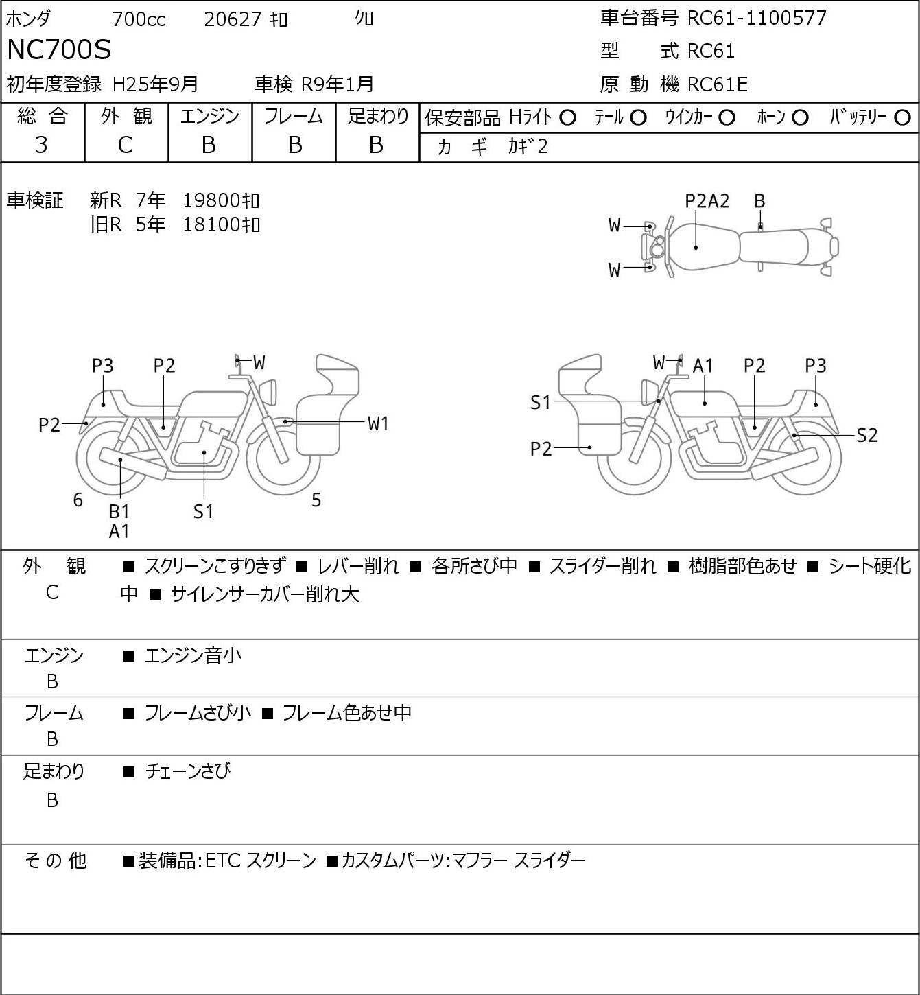 Detailed vehicle condition analysis performed by Japanese experts. Check damage codes below.