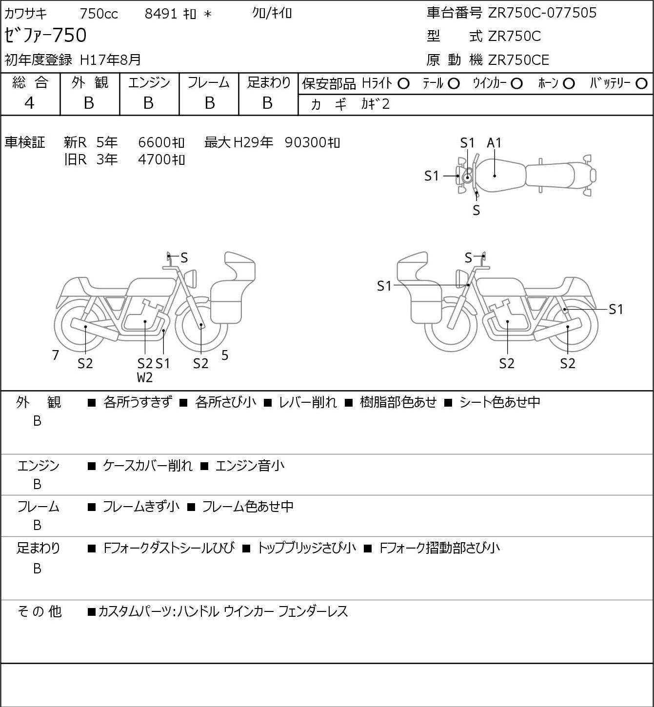- Numer ramy: ZR750C-077505