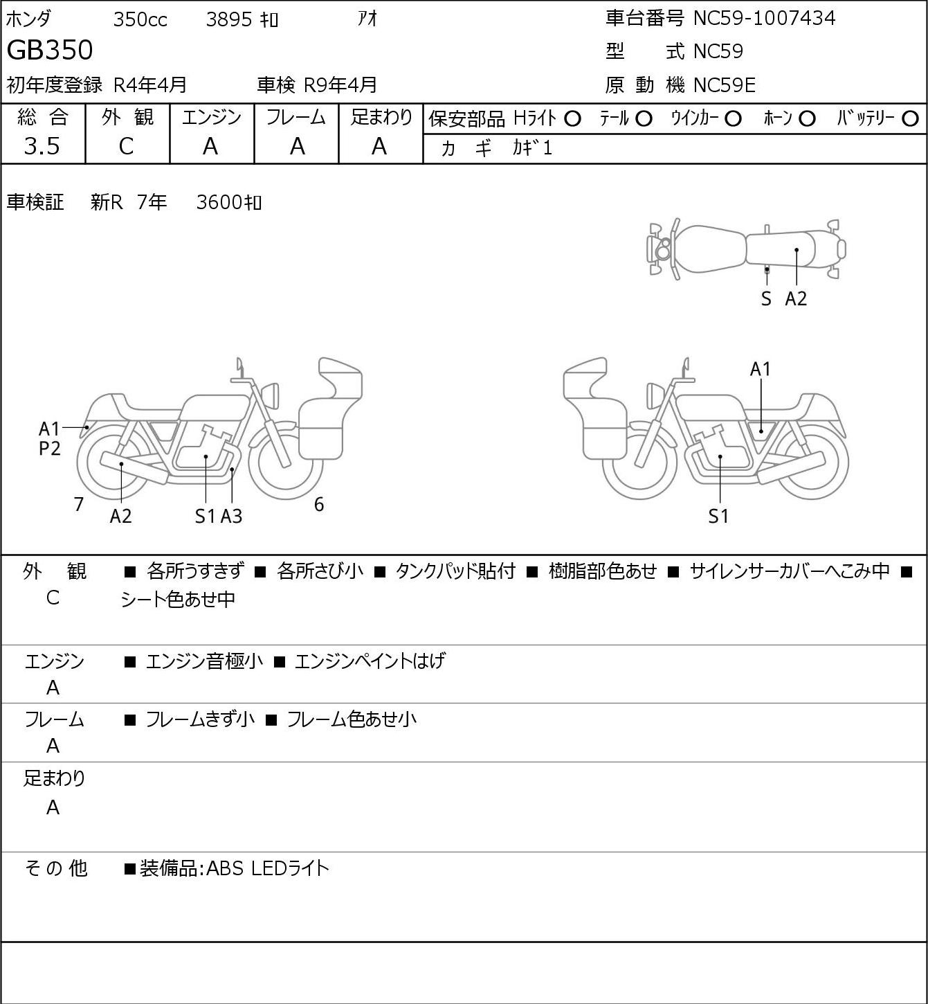 Detailed vehicle condition analysis performed by Japanese experts. Check damage codes below.