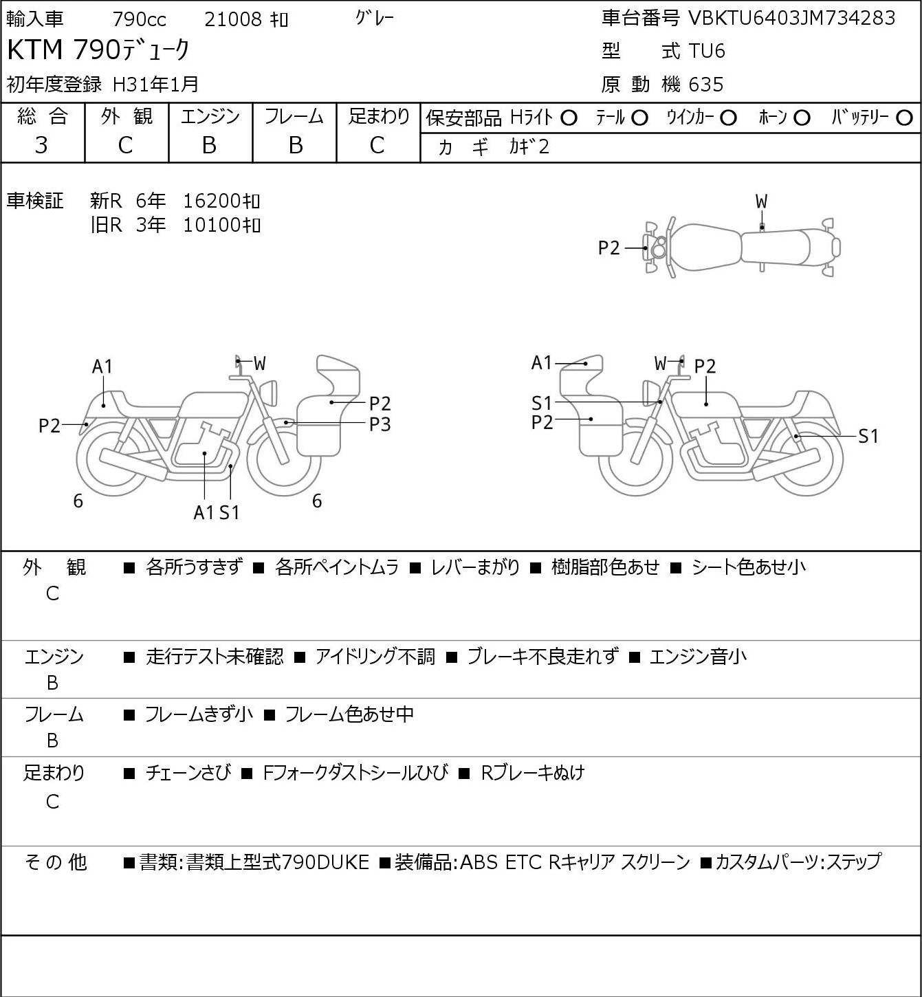 Detailed vehicle condition analysis performed by Japanese experts. Check damage codes below.