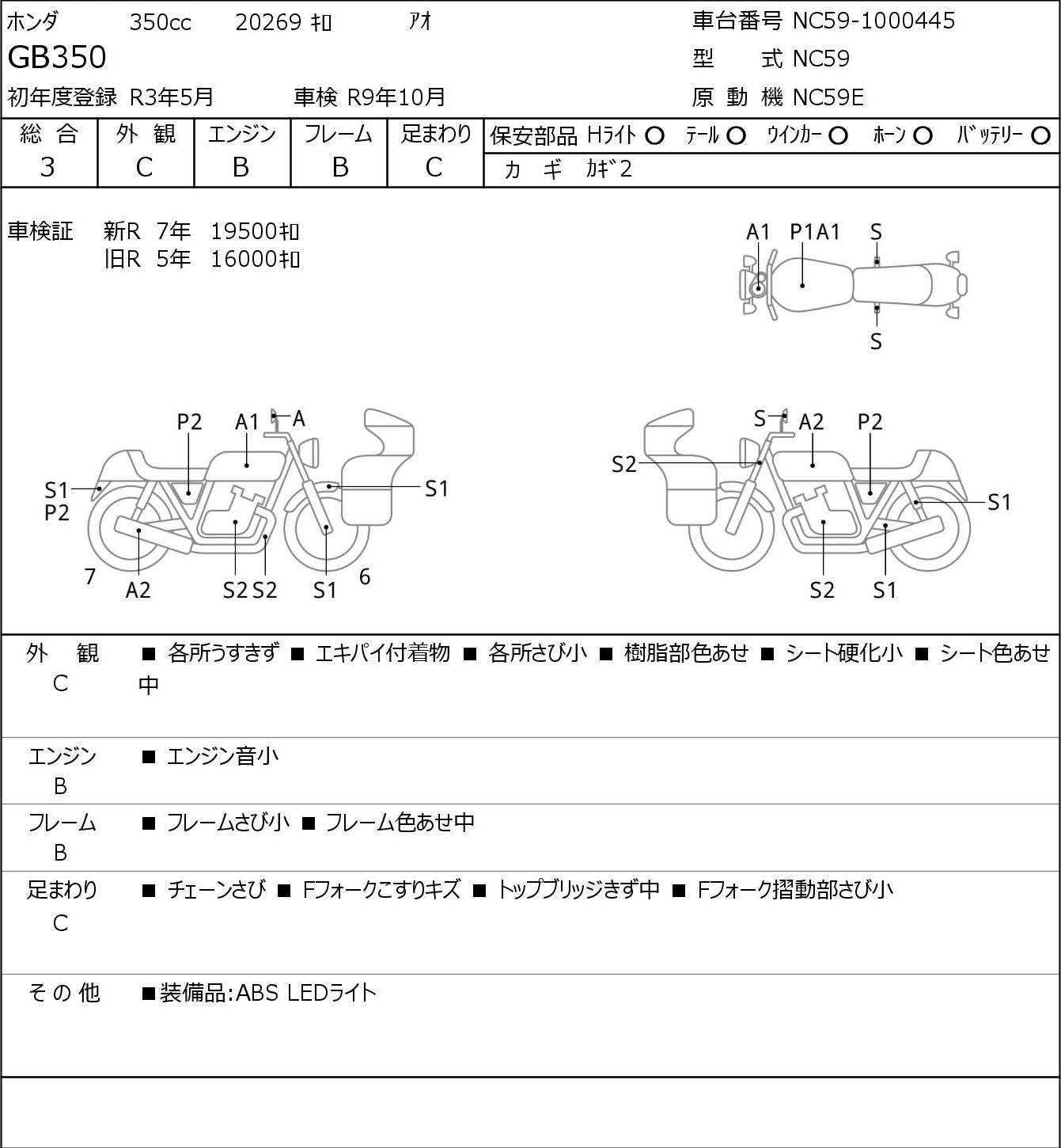 Detailed vehicle condition analysis performed by Japanese experts. Check damage codes below.