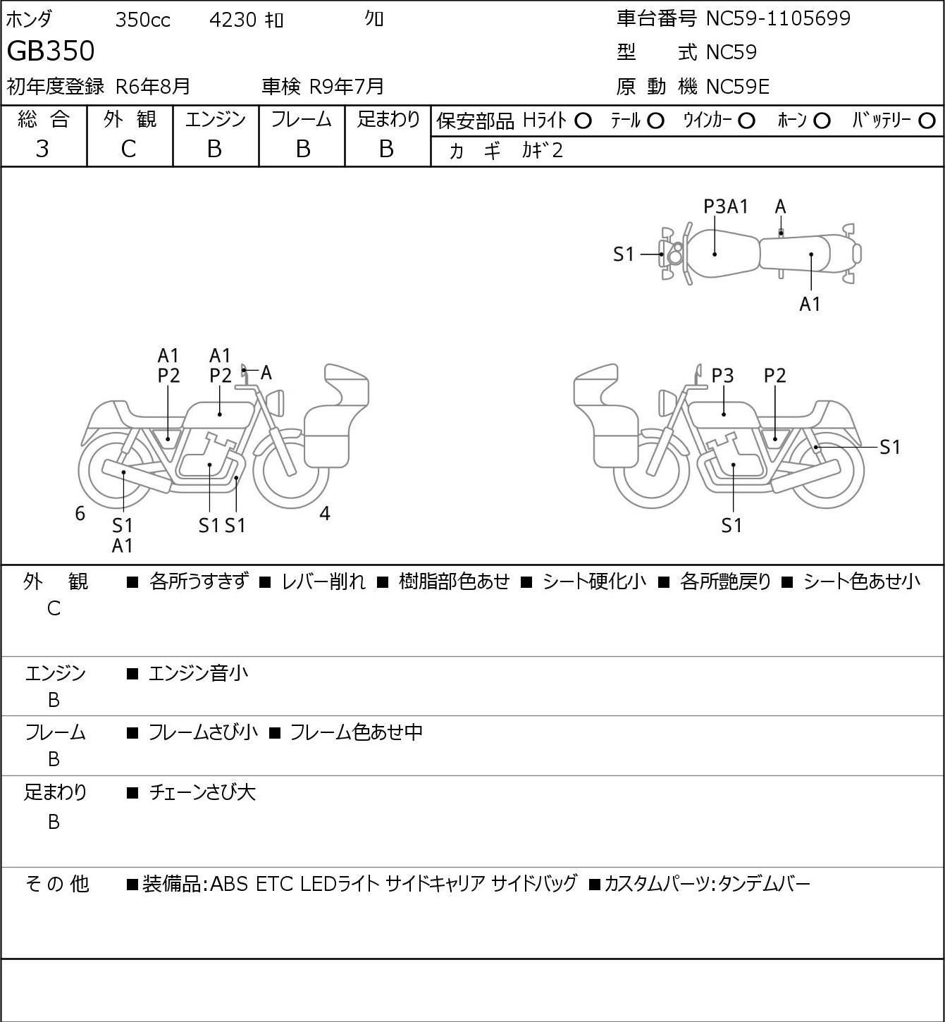 Detailed vehicle condition analysis performed by Japanese experts. Check damage codes below.