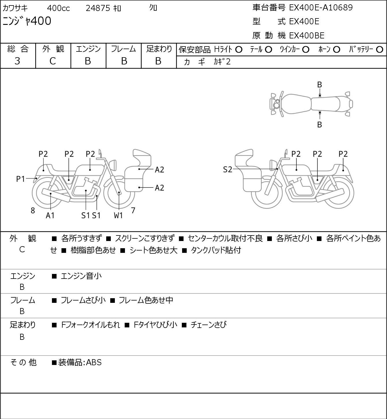 Detailed vehicle condition analysis performed by Japanese experts. Check damage codes below.