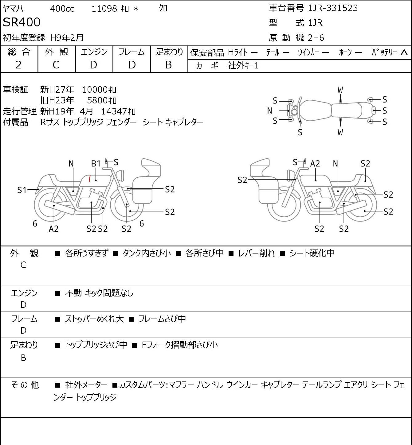 Detailed vehicle condition analysis performed by Japanese experts. Check damage codes below.