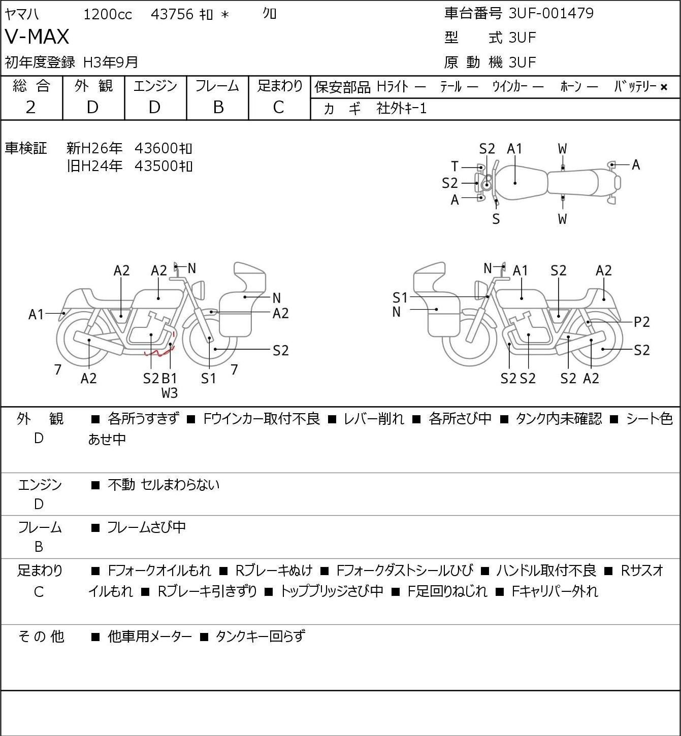 Detailed vehicle condition analysis performed by Japanese experts. Check damage codes below.