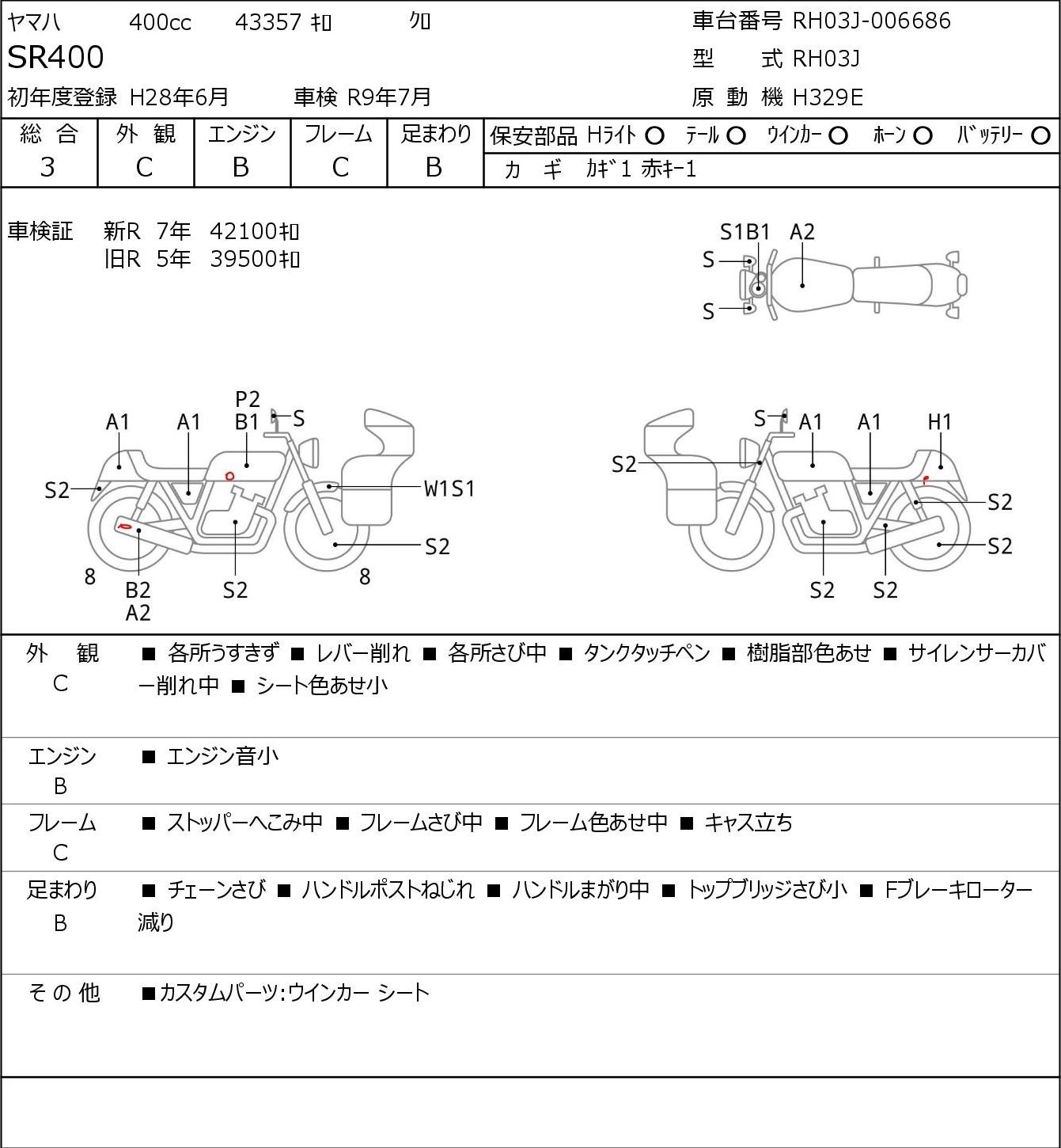 Detailed vehicle condition analysis performed by Japanese experts. Check damage codes below.