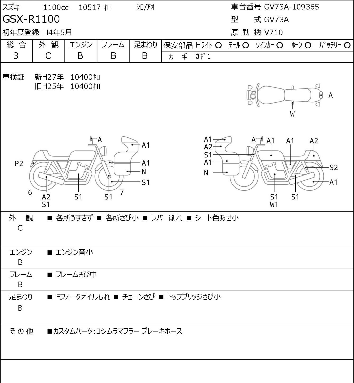 Detailed vehicle condition analysis performed by Japanese experts. Check damage codes below.