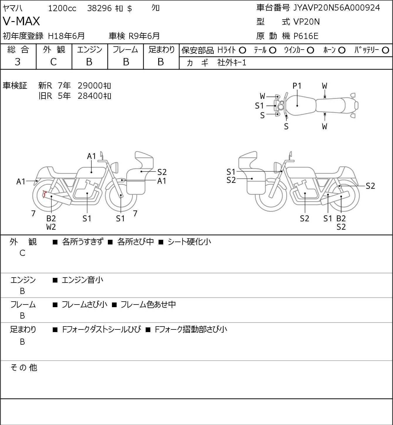 Detailed vehicle condition analysis performed by Japanese experts. Check damage codes below.