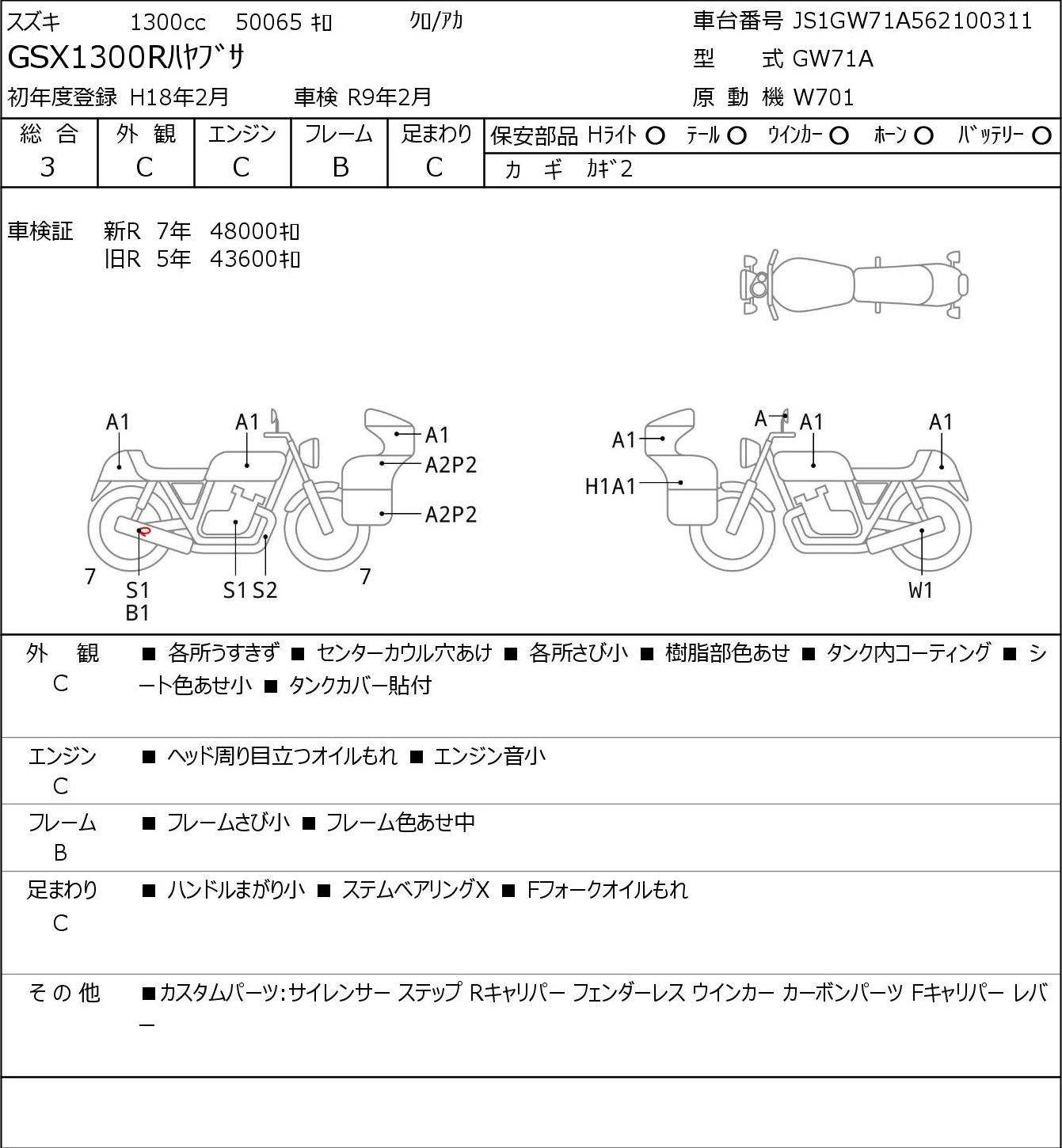 Detailed vehicle condition analysis performed by Japanese experts. Check damage codes below.
