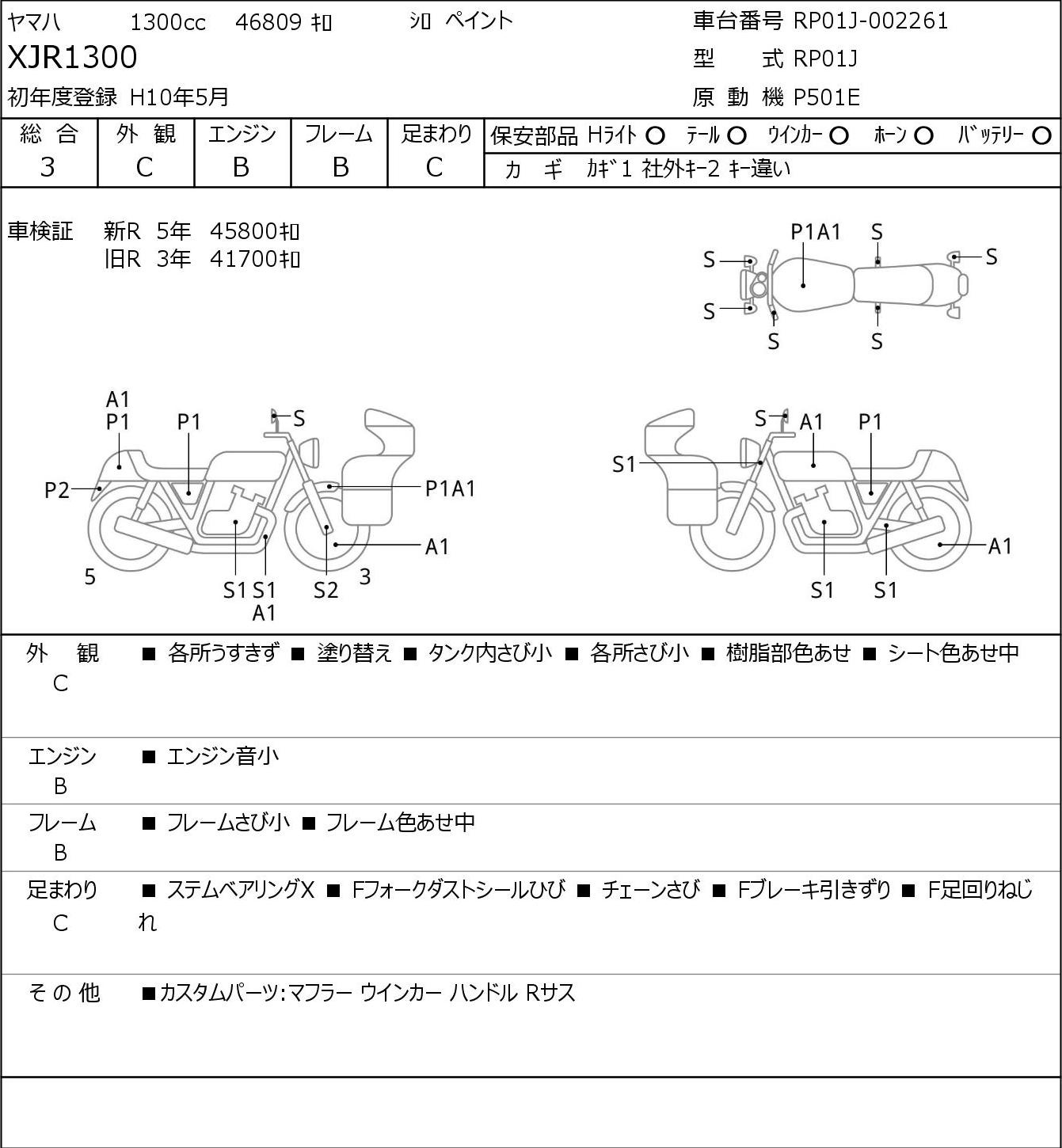 Detailed vehicle condition analysis performed by Japanese experts. Check damage codes below.