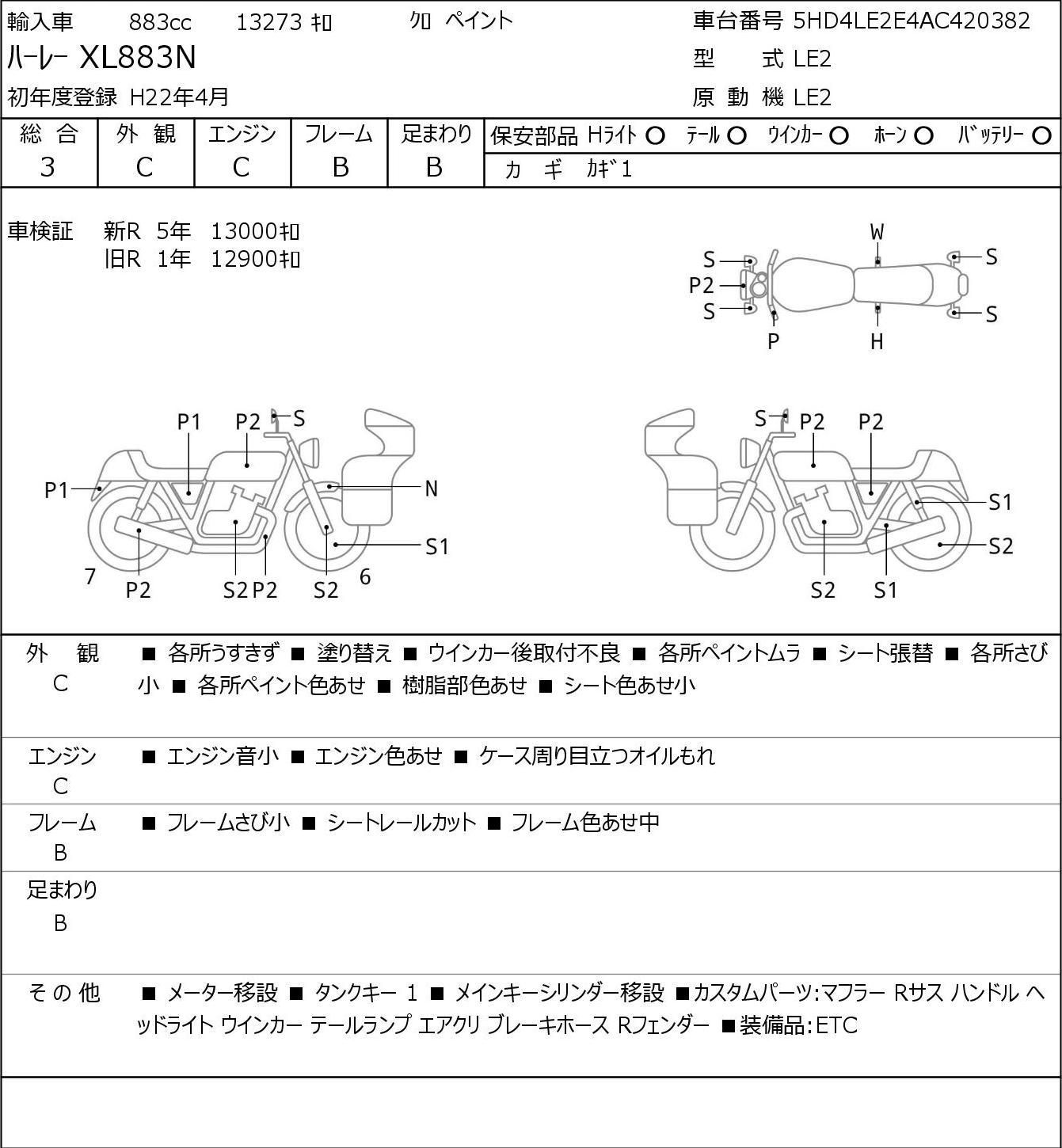 Detailed vehicle condition analysis performed by Japanese experts. Check damage codes below.