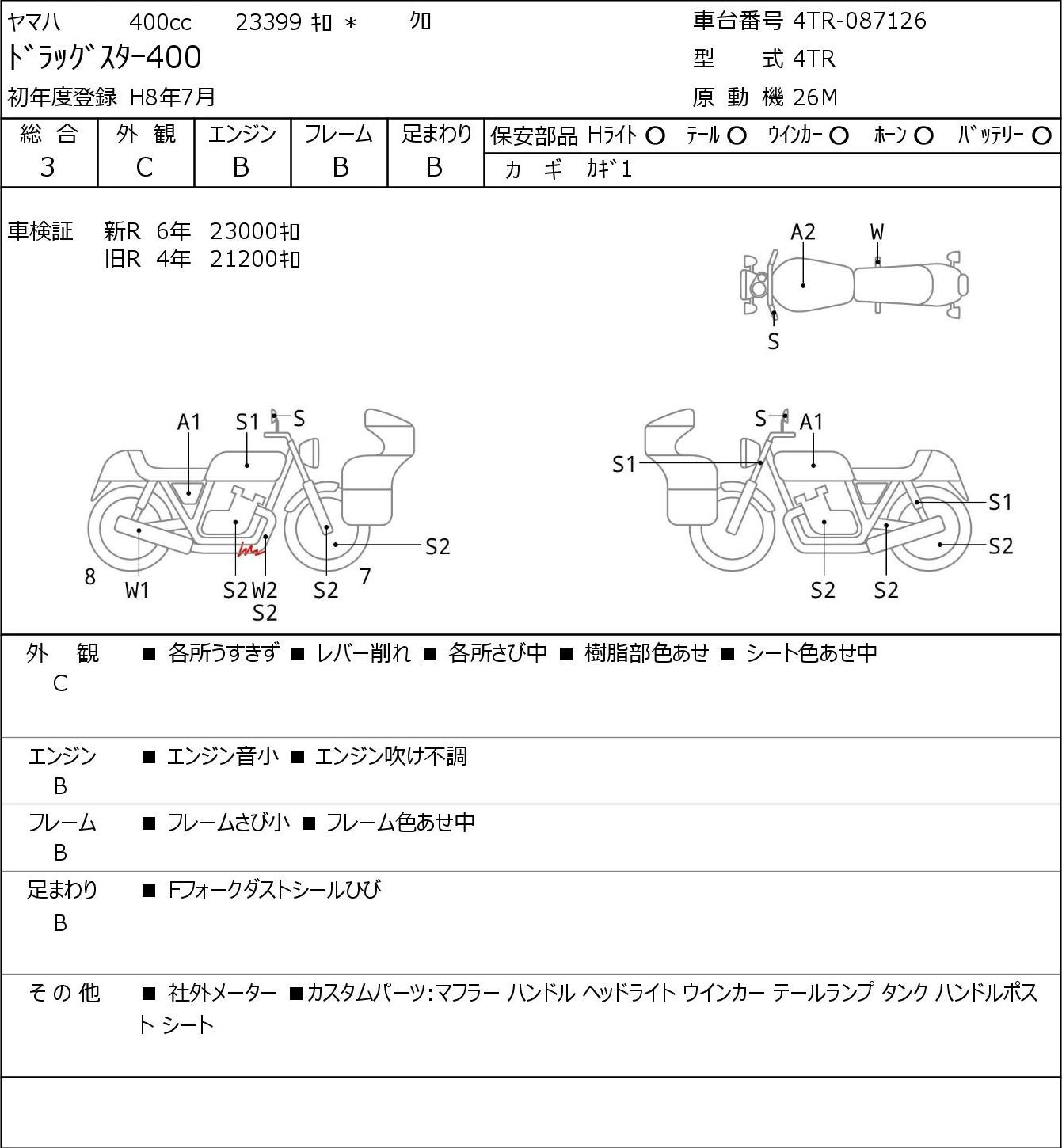 Detailed vehicle condition analysis performed by Japanese experts. Check damage codes below.