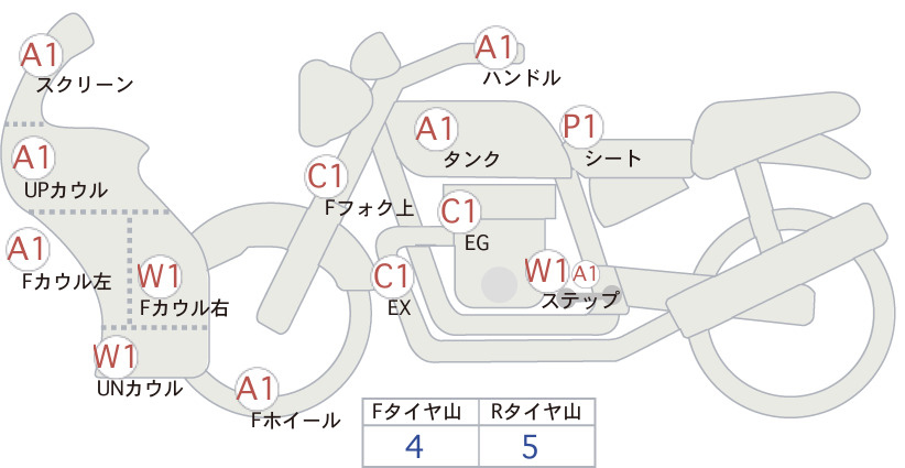 Detailed vehicle condition analysis performed by Japanese experts. Check damage codes below.