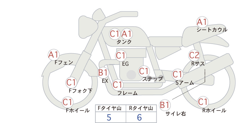 Detailed vehicle condition analysis performed by Japanese experts. Check damage codes below.