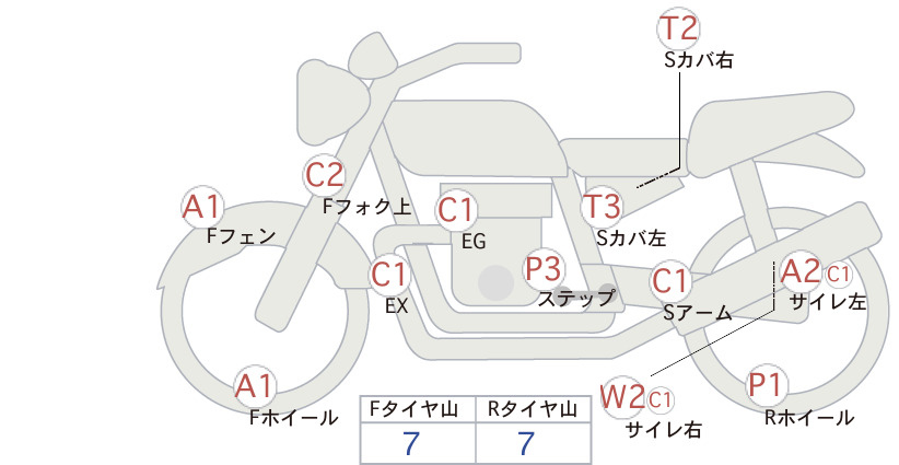 Detailed vehicle condition analysis performed by Japanese experts. Check damage codes below.